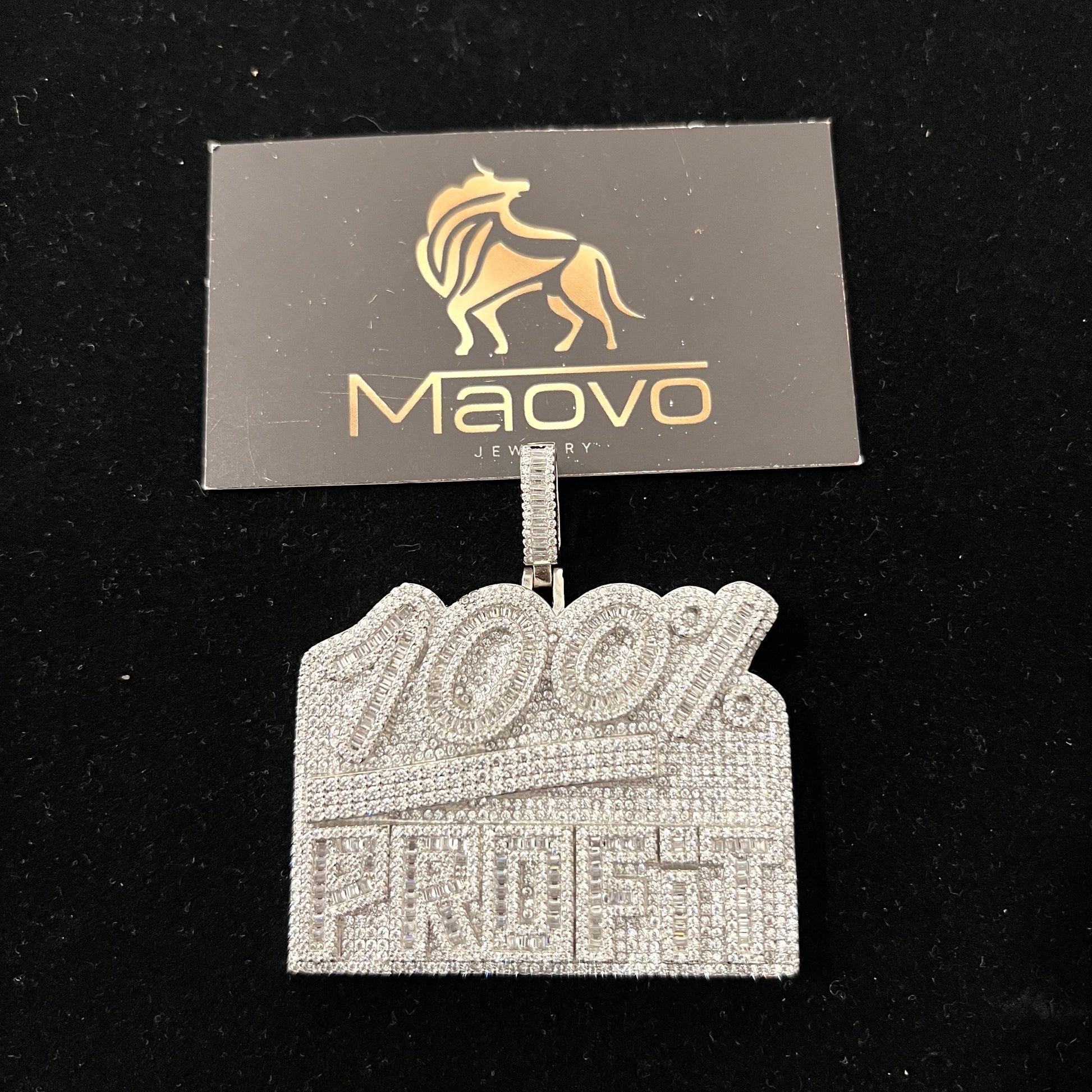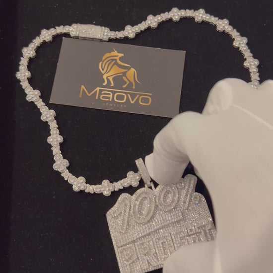 100% PROFIT Iced Out Pendant Necklace – Silver Plated Cuban Link Chain Maovo