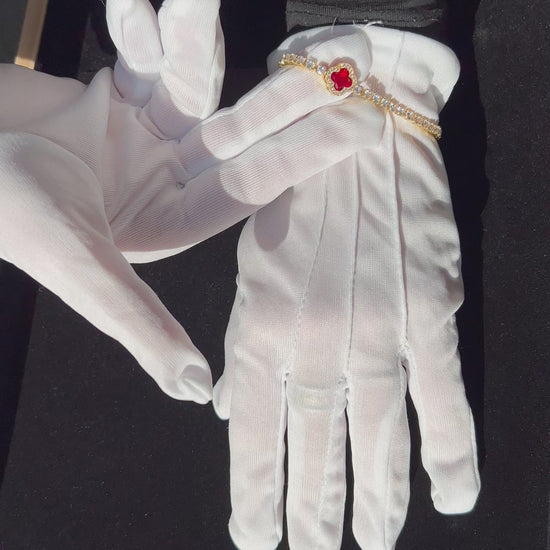 Adorned with dazzling red moissanite and sparkling cubic zirconia stones, the clover charm symbolizes good fortune and style. Perfect for any occasion, from birthdays to anniversaries, this trendy piece is sure to make a statement.