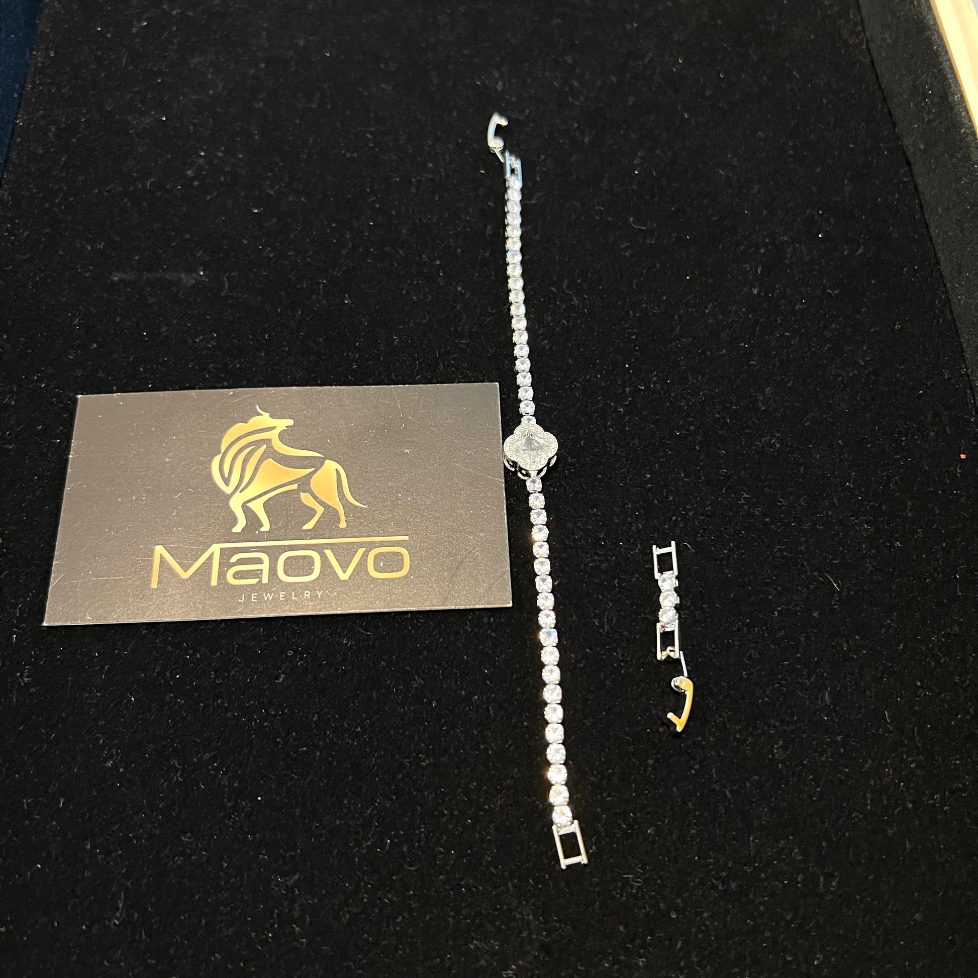 Unisex Four Leaf Clover Tennis Bracelet Silver with white Charm, Adjustable Jewelry